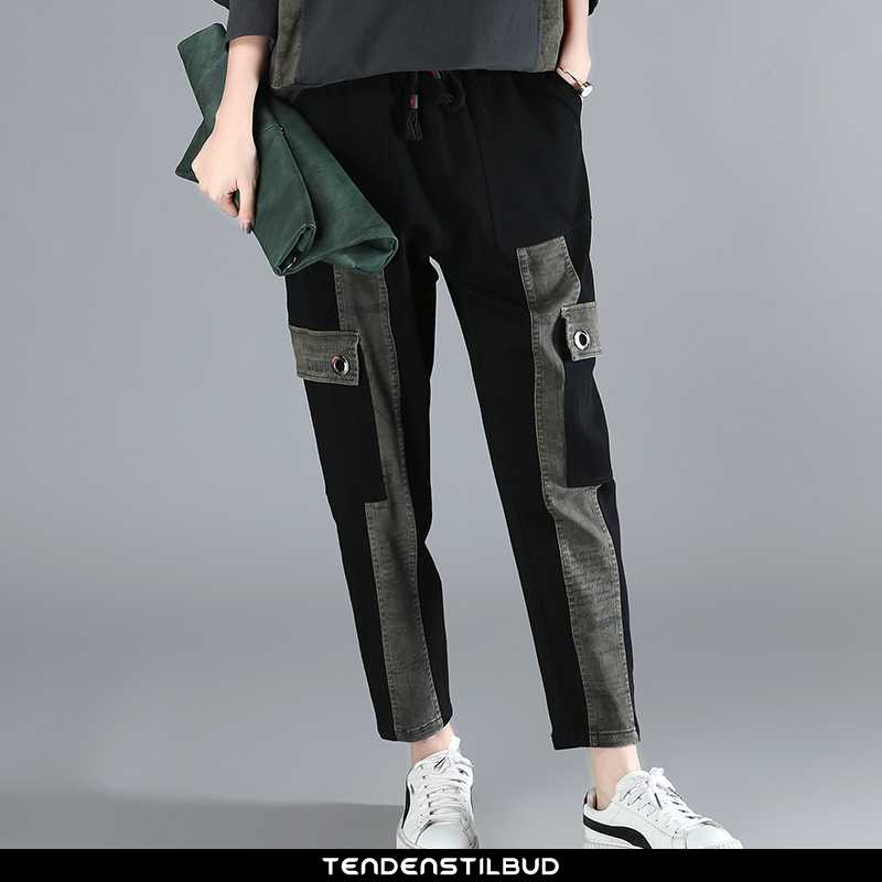 Bukser dame : casual løse mode behagelige elegante trend forårs 2020 midt talje sort, farve : sort.