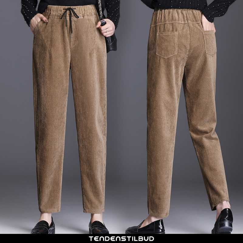 Bukser dame : højtaljet mode 2021 fløjl brun harlan ny, farve : brune, sort, beige.