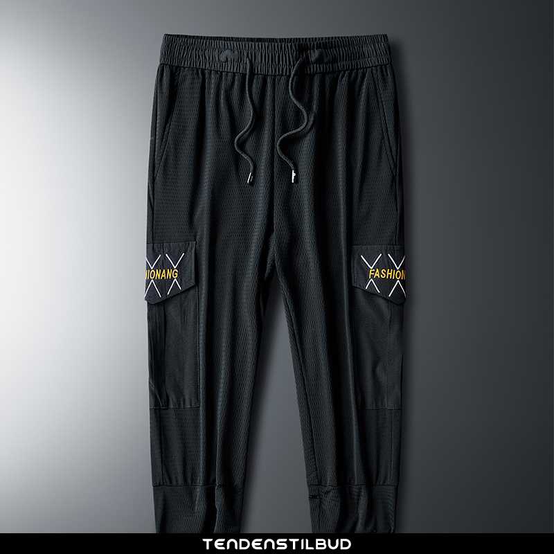 Bukser herre : casual bukser sports cargo sommer 2020 capri bukser stramme is silke ny åndbare sort, farve : sort.