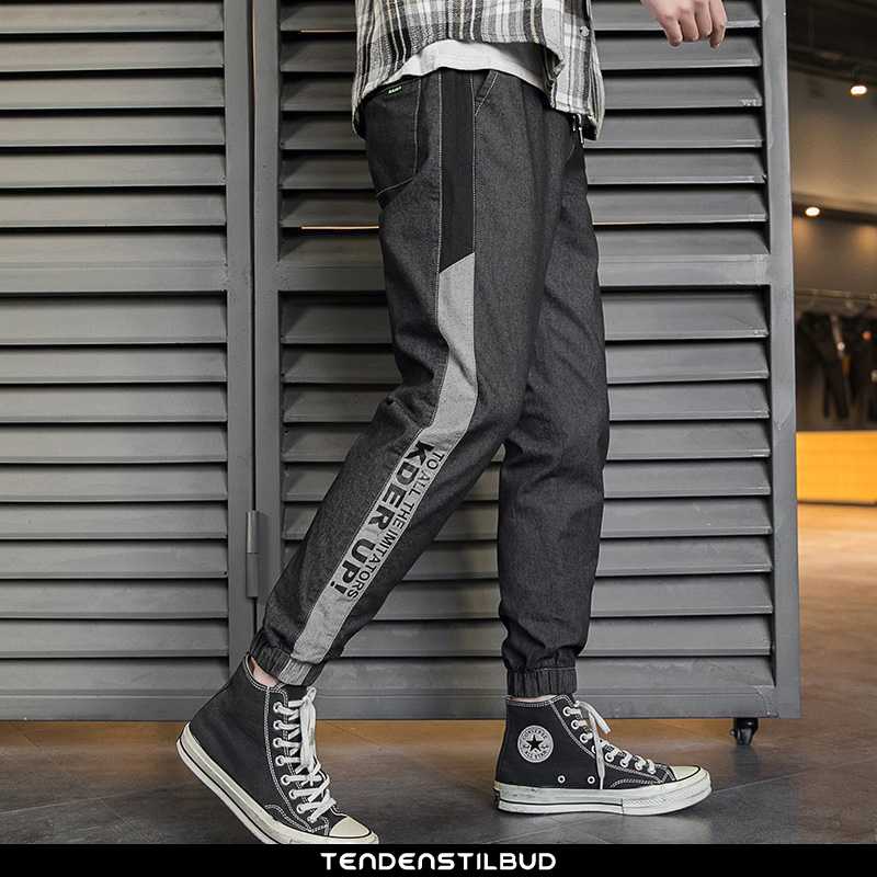 Bukser herre : casual bukser skinny slim fit trend forårs tynd 2020 stramme mænd sort, farve : sort, grå sort.