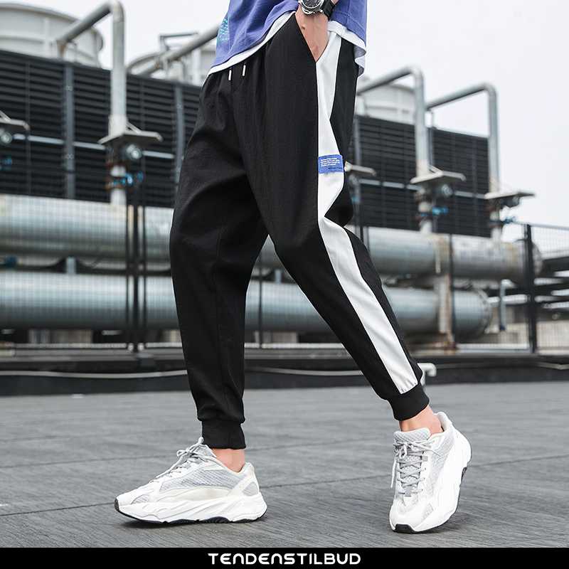 Bukser herre : casual bukser skinny slim fit forårs tynd sommer 2020 stramme ny mænd sort, farve : sort.