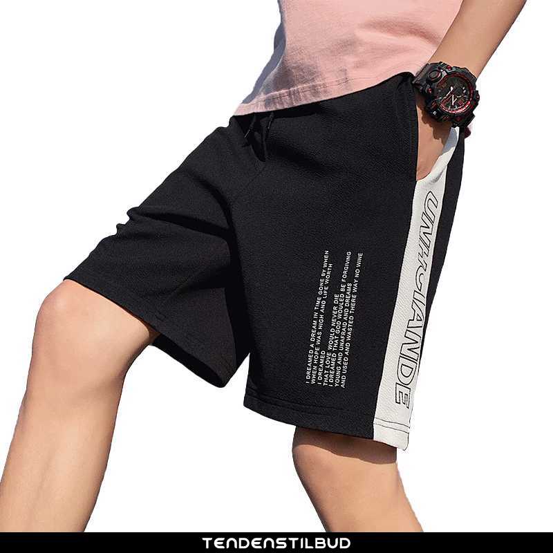 Bukser herre : shorts strikket casual sports tryk forårs sommer 2020 simple alfabet ny mænd sort rød, farve : sort, gul, rød.