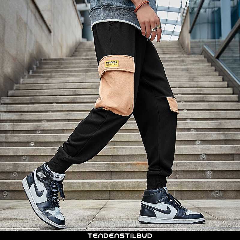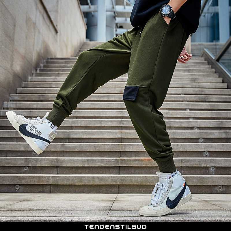 Bukser herre : casual løse trend 2021 alt matcher ny mænd sort, farve : sort, turkis.
