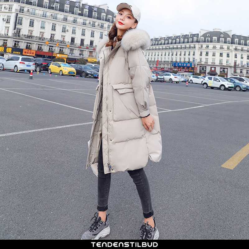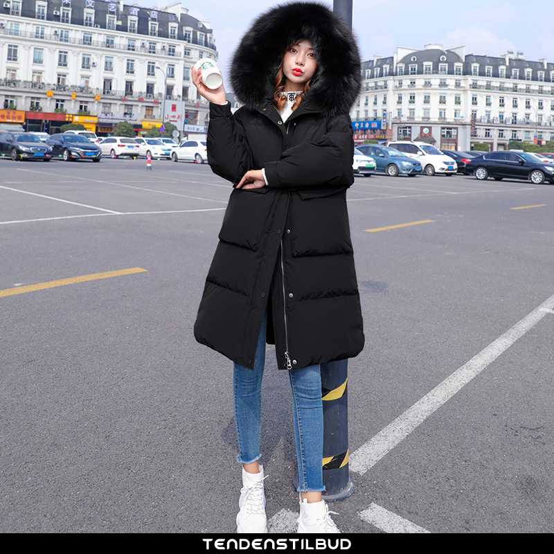 Dunjakke dame : casual mode behagelige langærmet elegante trend vinter lang 2021 midten sort, farve : sort, hvid beige.