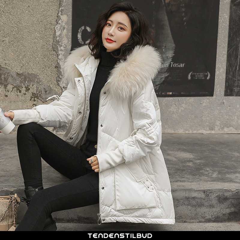 Dunjakke dame : varm mode med hætte elegante vinter 2021 hvid alt matcher, farve : ren hvid, lyserød, sort.