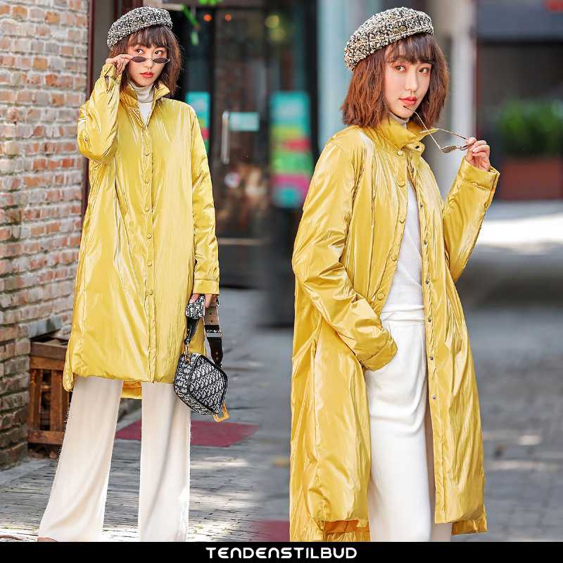 Dunjakke dame : mode skinny lette vinter lang tynd 2021 alt matcher dun ny hvid midten kvinder gul, farve : sort, grå, gul.