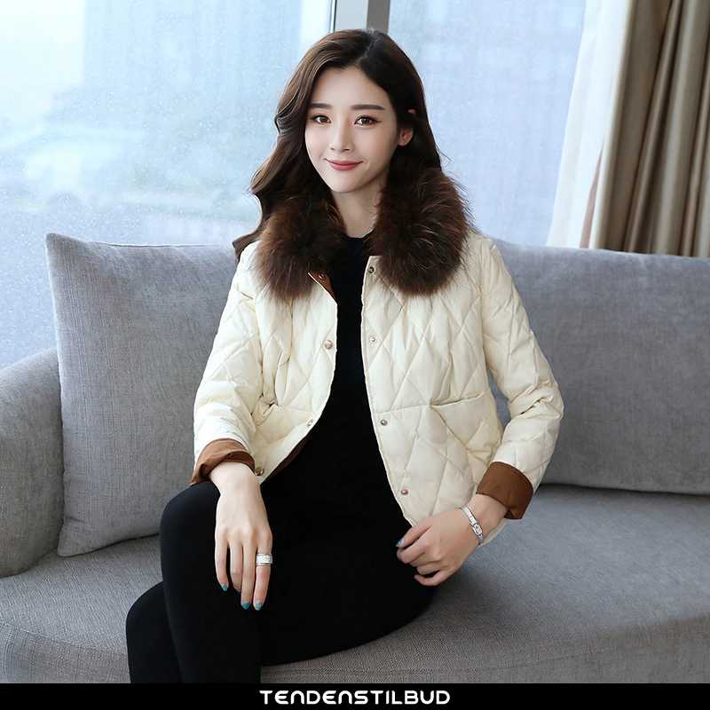 Dunjakke dame : casual mode vinter korte 2021 ren alt matcher hver dag ræv rund hals store størrelser sort, farve : sort, beige, brune.