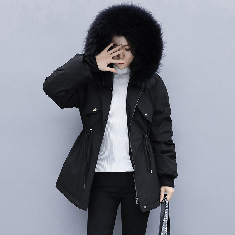 Dunjakke dame : skinny korte 2021 pelskrave damer ny lille sektion stor sort, farve : sort.