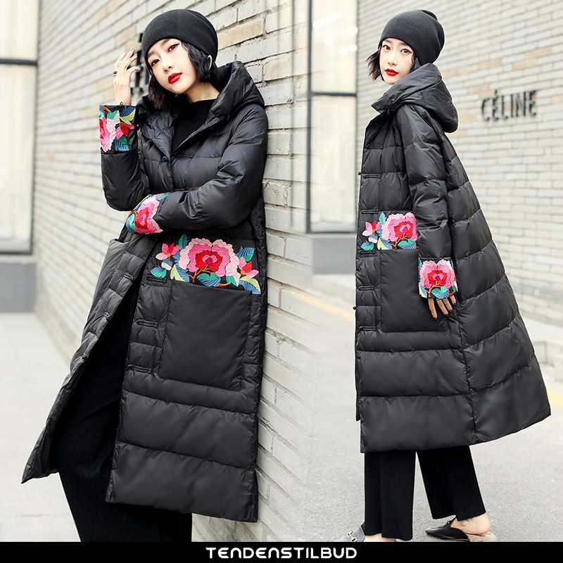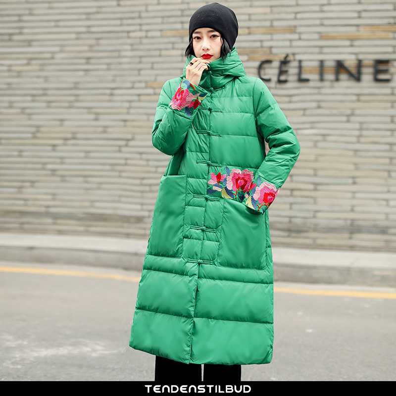 Dunjakke dame : casual mode elegante trend vinter lang 2021 personlighed midten grøn, farve : sort, bordeaux, turkis, lyserød.
