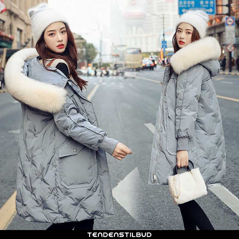 Dunjakke dame : varm casual løse mode med lynlås trend ren lommer hver dag stor, farve : sort, beige, grå.