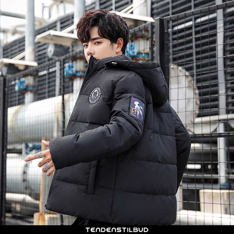 Dunjakke herre : bomuldsjakke tykke trend lang studerende blå clearance høj krave midten mænd, farve : sort, mørkeblå.