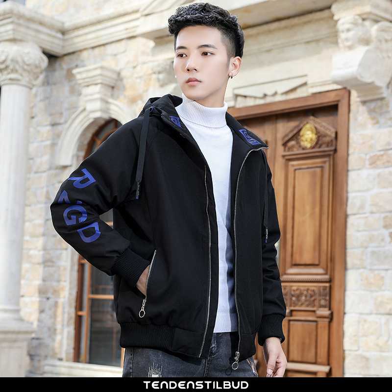 Dunjakke herre : frakke tykke trend lette vinter korte tynd ny mænd sort, farve : sort.