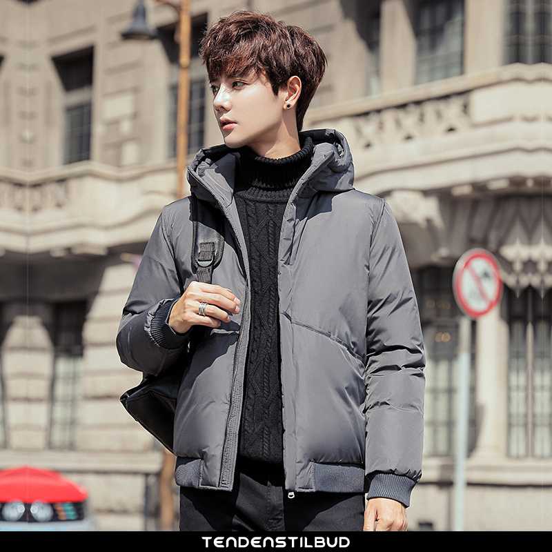 Dunjakke herre : frakke bomuldsjakke løse tykke trend korte 2020 ungdom smuk dun ny grå hvid mænd, farve : grå, sort.