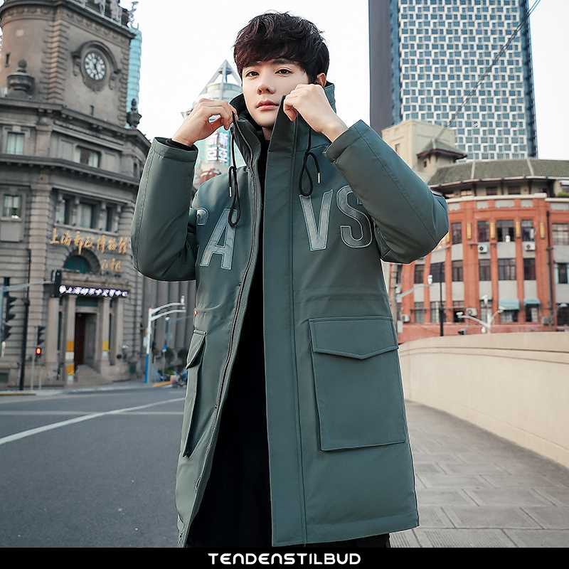 Dunjakke herre : frakke varm tykke slim fit vinter lang 2021 jakke smuk hvid midten mænd sort, farve : hvid grå, turkis, sort.