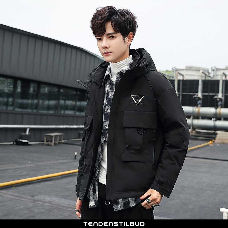 Dunjakke herre : frakke tykke trend vinter korte 2021 ungdom studerende smuk mesh mænd rød, farve : beige, mørkeblå, sort.