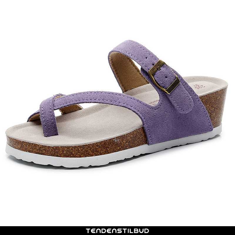 Flip flop dame : hjemmesko mode strand med kilehæl tykke sommer skridsikre alt matcher lilla store størrelser kvinder træ, farve : lilla, lyserød, beige, sort, grå, lyserød.
