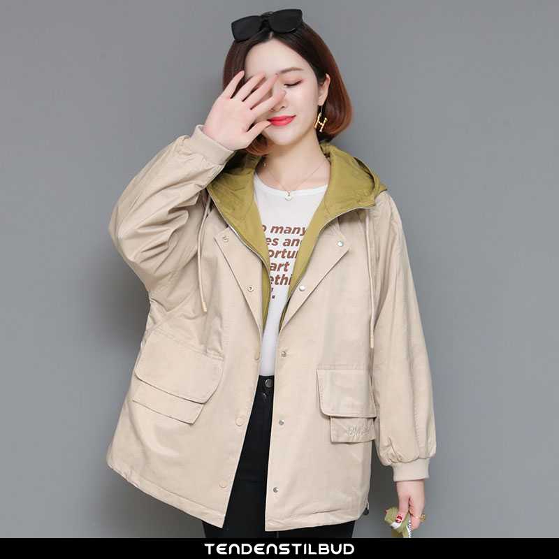 Frakke dame : mode behagelige med hætte langærmet trend korte forårs 2020 personlighed elegante grøn, farve : ren hvid, turkis, hvid beige.