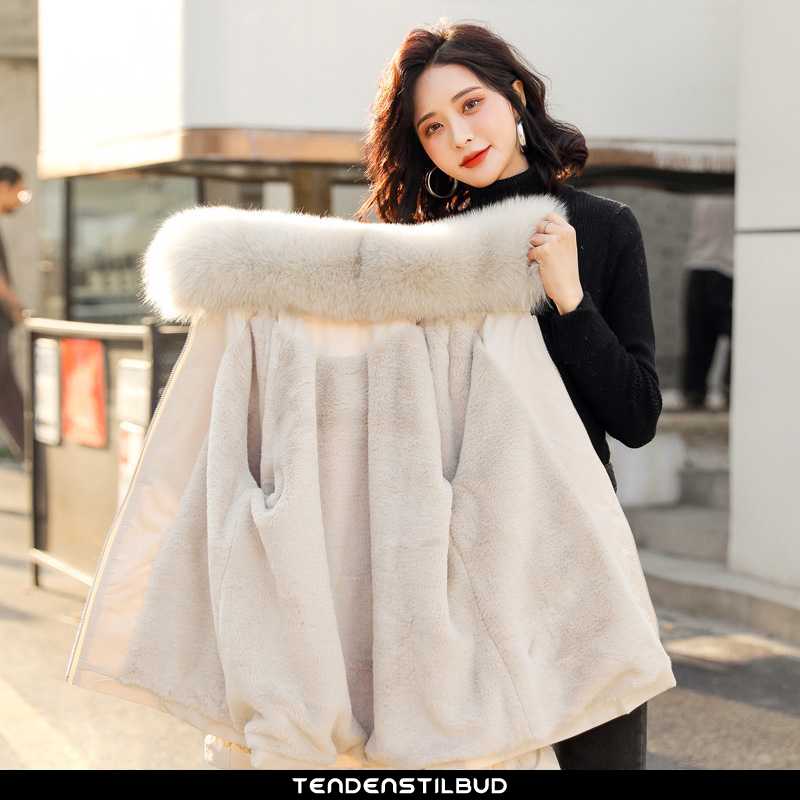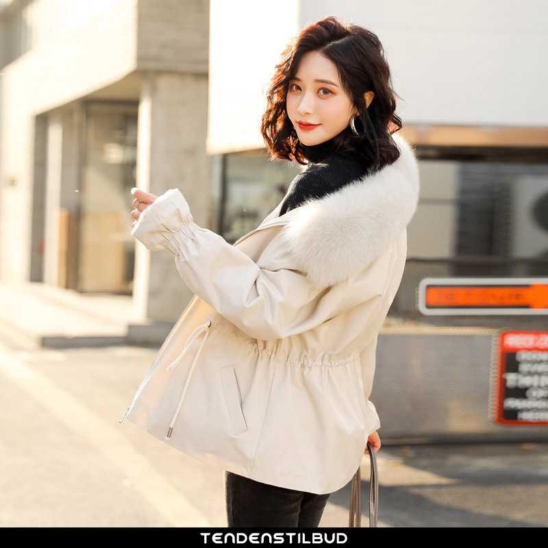 Frakke dame : bomuld jakke casual mode behagelige med hætte langærmet elegante trend vinter 2021, farve : beige.