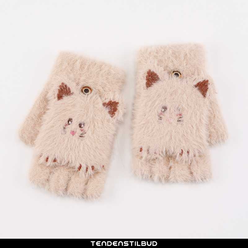 Handsker dame : varm vinter studerende smuk khaki multifunktions cartoon kold halvfinger kvinder, farve : khaki, beige, lyserød, grå, sort.