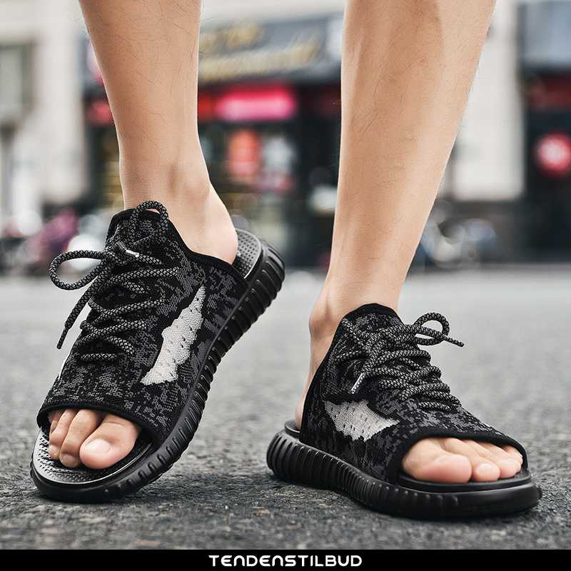Hjemmesko herre : strand trend sommer 2020 personlighed overtøj strikkede alt matcher ny åndbare mænd sort, farve : grå, sort, hvid, sort.