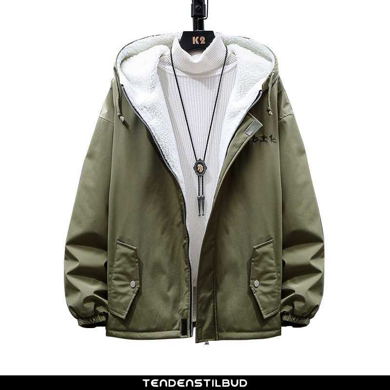 Jakke herre : bomuld jakke casual trend vinter 2021 plus cashmere ny mænd grøn, farve : grå, militærgrøn, sort.