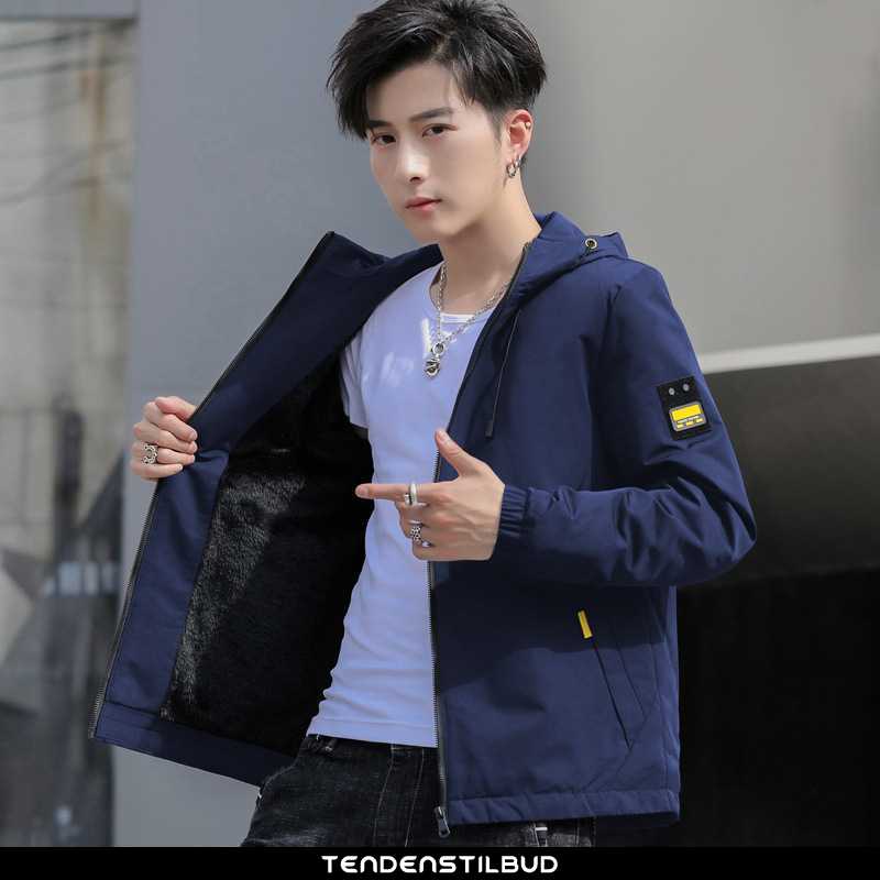 Jakke herre : frakke bomuld tykke slim fit trend vinter mørkeblå teenager plus cashmere studerende gymnasium mænd, farve : mørkeblå, sort, militærgrøn.