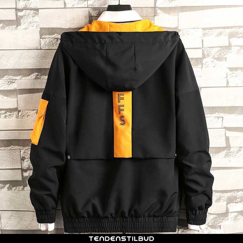 Jakke herre : frakke casual cargo trend forårs 2021 smuk alt matcher ny mænd sort, farve : sort, gul, lilla.