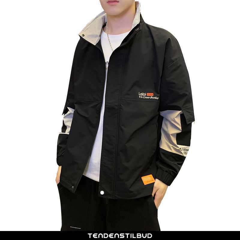 Jakke herre : frakke casual med hætte cargo trend forårs studerende smuk alt matcher ny mænd sort, farve : khaki, sort.