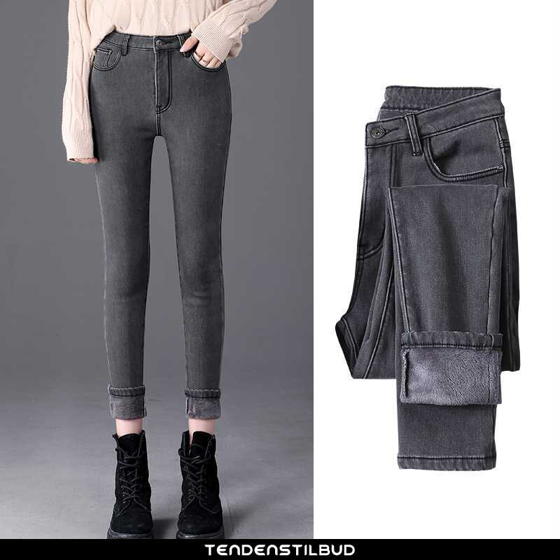 Jeans dame : cowboybukser bukser højtaljet tykke stretch skinny vinter plus cashmere overtøj ny kvinder sort, farve : sort, grå.