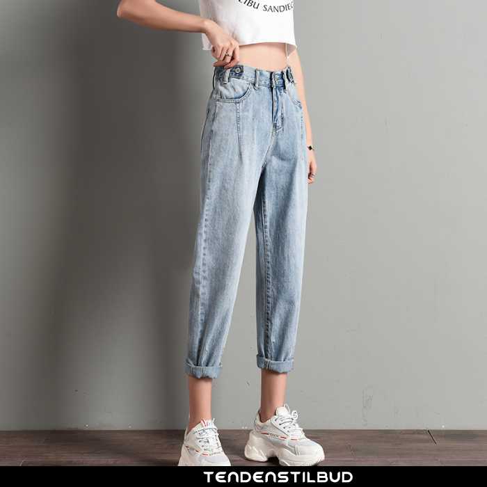 Jeans dame : cowboybukser højtaljet løse skinny med huller tynd blå damer kvinder, farve : blå, blå.