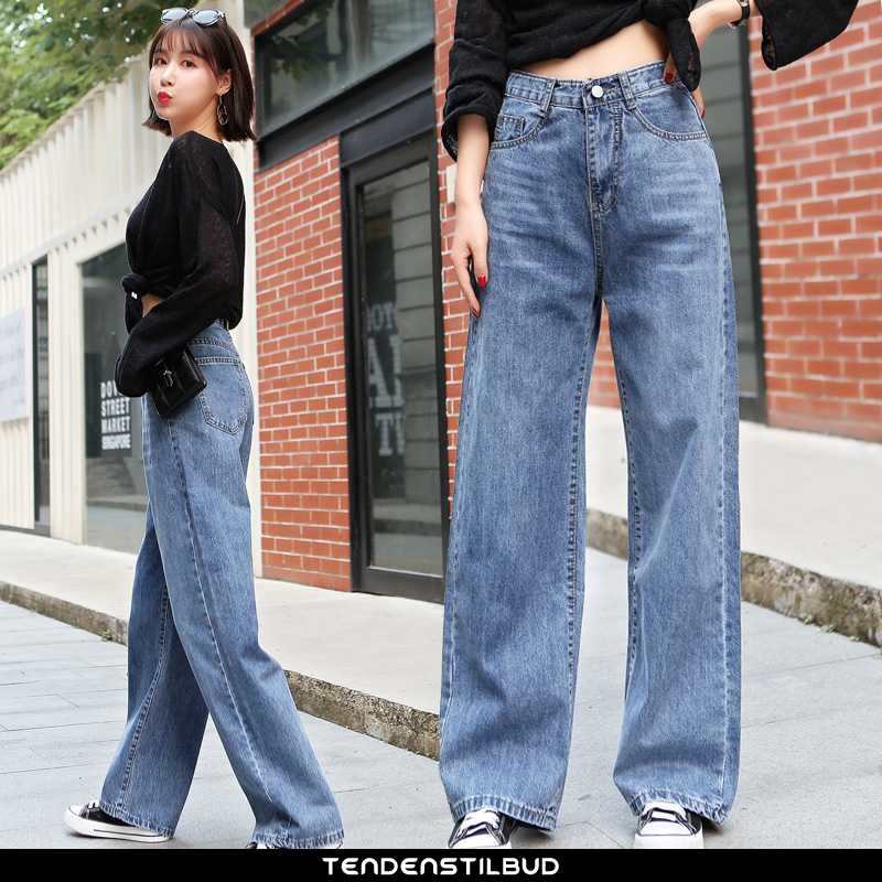 Jeans dame : cowboybukser løse mode behagelige skinny trend lette forårs 2020 mørkeblå ren simple ny elegante, farve : mørkeblå.
