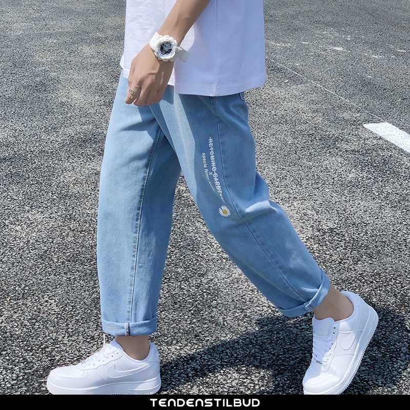 Jeans herre : cowboybukser bukser casual straight løse skinny trend forårs sommer tusindfryd salg dragon mænd sort, farve : blå lyse, sort.