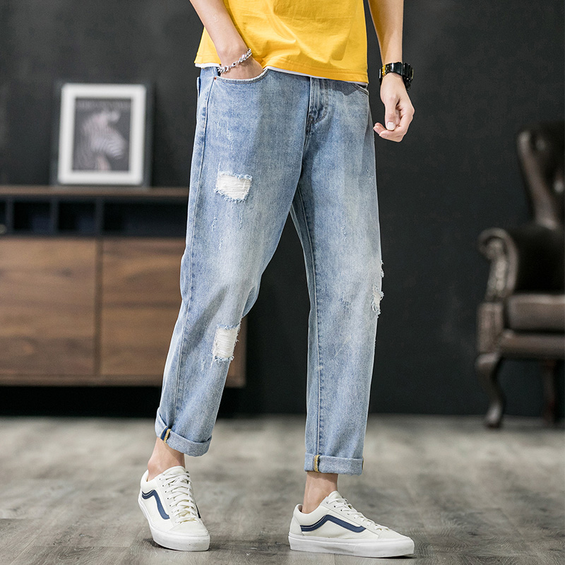 Jeans herre : cowboybukser bukser straight løse med huller trend sommer harlan blå alt matcher store størrelser mænd, farve : blå.
