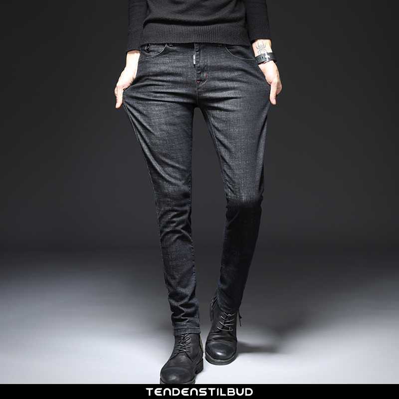 Jeans herre : cowboybukser slim fit trend plus cashmere ny mænd høj sort, farve : sort.