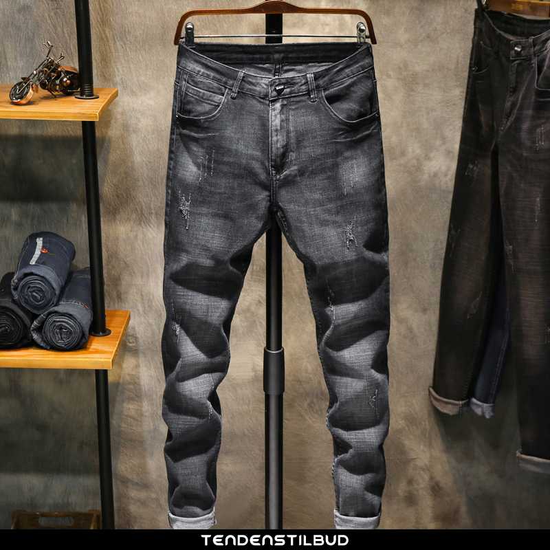 Jeans herre : cowboybukser bukser mode skinny slim fit med huller trend forårs 2020 mænd sort, farve : sort, mørkeblå.