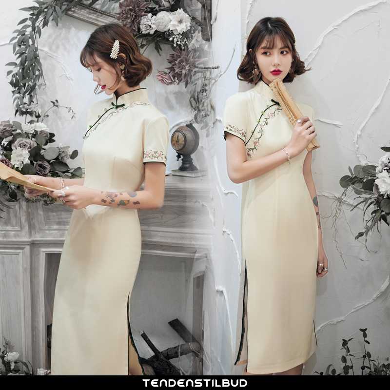 Kjoler dame : cheongsam mode elegante skinny slim fit alt matcher, farve : beige.