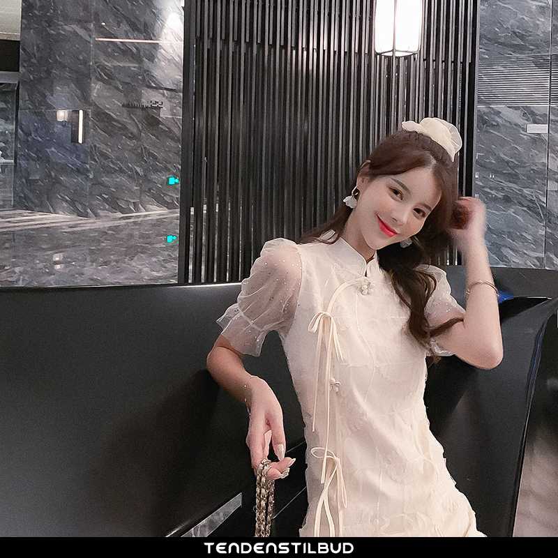 Kjoler dame : kjole cheongsam vintage elegante skinny slim fit lang sommer 2020 hvid midten kvinder, farve : grøn, hvid.