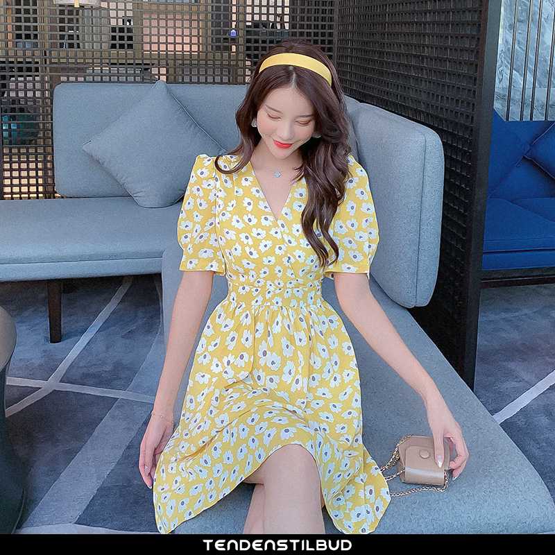 Kjoler dame : kjole blomstret skinny slim fit lang sommer 2020 elegante ny midten kvinder gul, farve : bordeaux, gul.
