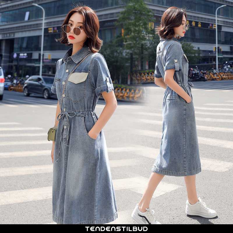 Kjoler dame : kjole casual mode behagelige kortærmet elegante trend lang sommer 2020 blå midten, farve : blå.