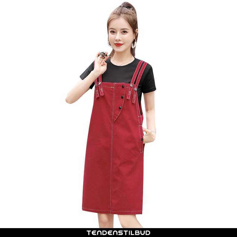 Kjoler dame : kjole casual straight sommer 2020 todelt kjole med seler jakkesæt ny lille sektion rød, farve : bordeaux, khaki, sort, orange.