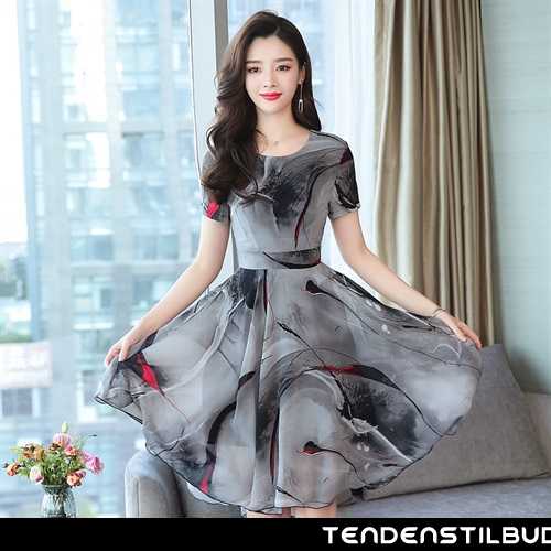 Kjoler dame : kjole chiffon mode kortærmet tryk skinny sommer 2020 drømme elegante ny grå stor, farve : grå.