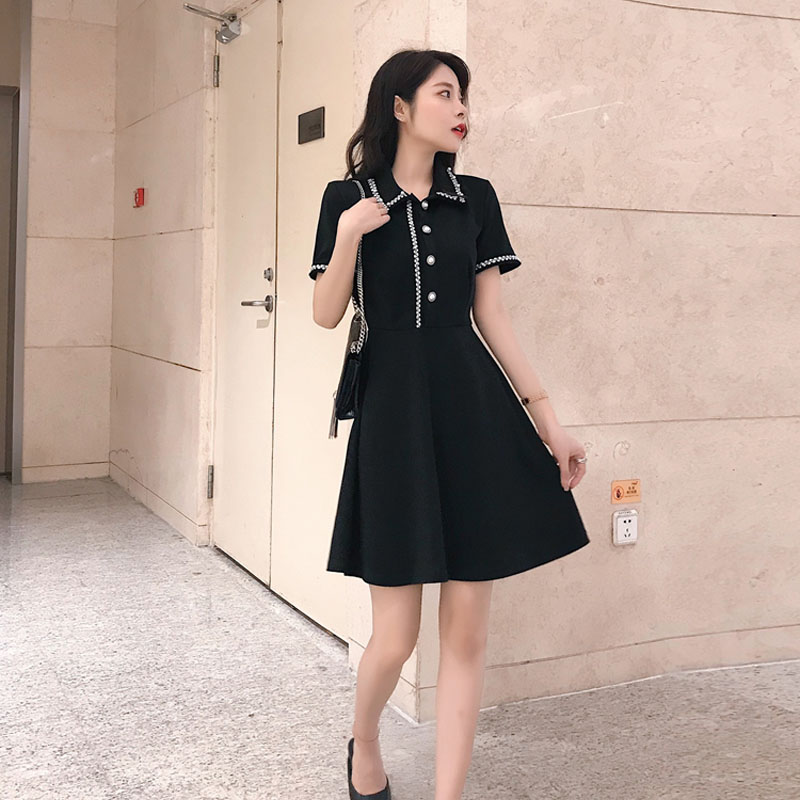 Kjoler dame : kjole mode behagelige kortærmet elegante trend lang sommer 2020 personlighed midten sort, farve : sort.