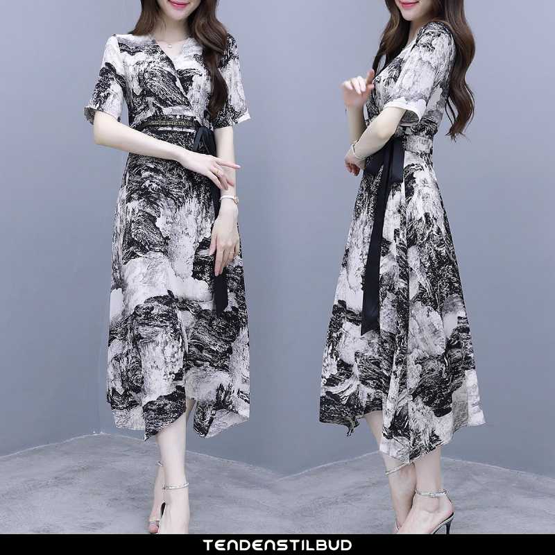 Kjoler dame : kjole trend skinny lang sommer 2020 elegante high end midten kvinder sort, farve : sort.