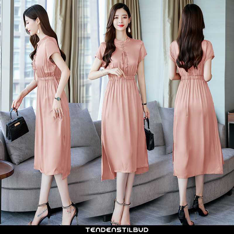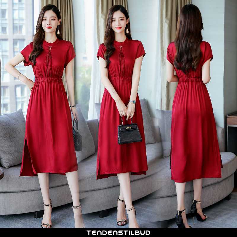 Kjoler dame : kjole mode behagelige elegante trend lang sommer 2021 personlighed midten rød, farve : lyserød rød, bordeaux.