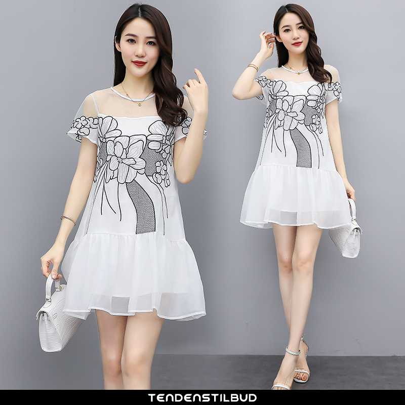 Kjoler dame : kjole casual mode behagelige kortærmet elegante trend sommer 2020 hvid rund hals, farve : hvid.