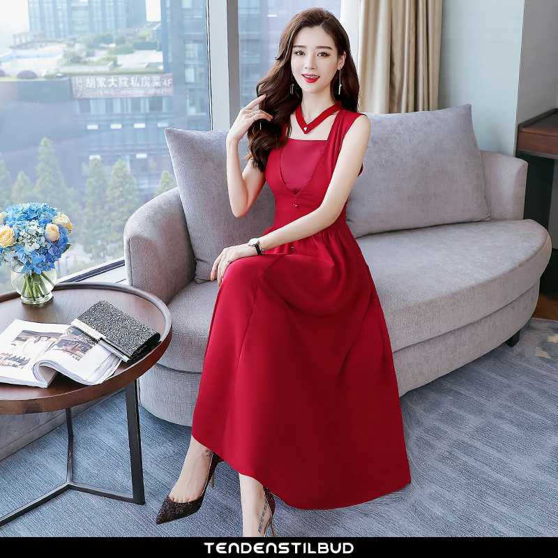 Kjoler dame : kjole mode elegante skinny slim fit sommer 2020 todelt kjole smuk sort, farve : sort, bordeaux.