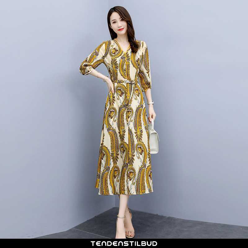 Kjoler dame : kjole sommer 2020 hver dag pullover farve rød, farve : sort, rød, gul.