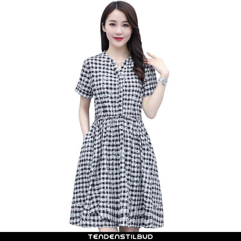 Kjoler dame : kjole højtaljet skinny sommer 2020 ternede stramme alt matcher hver dag pullover sort, farve : gul, grøn, sort.