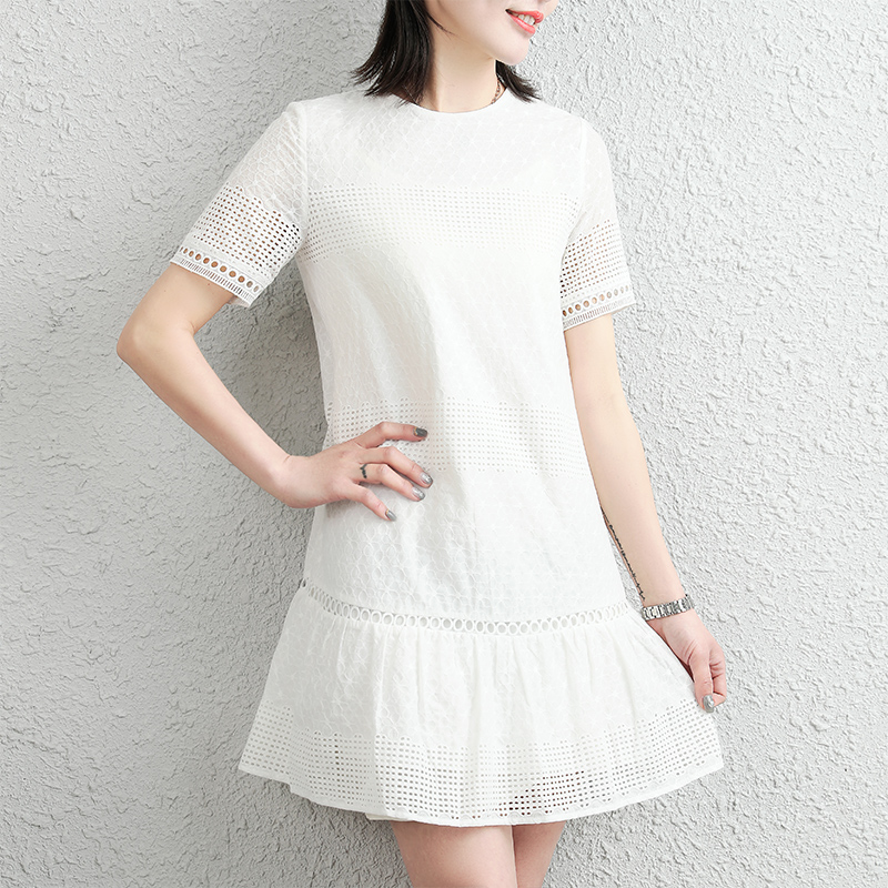 Kjoler dame : kjole løse blonder lang sommer 2020 fishtail ren hvid elegante alt matcher ny store størrelser midten kvinder, farve : ren hvid.
