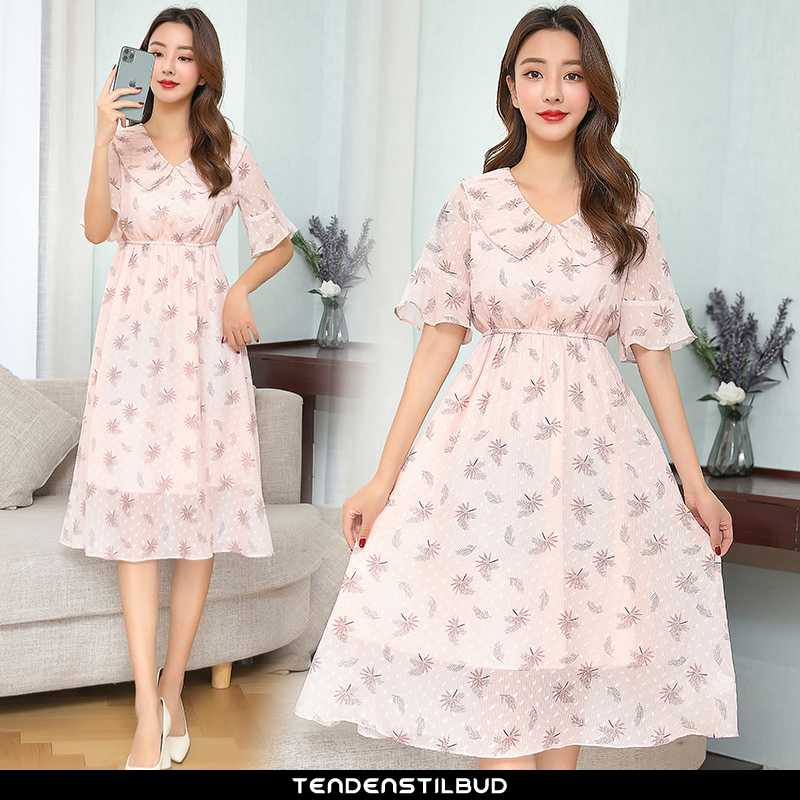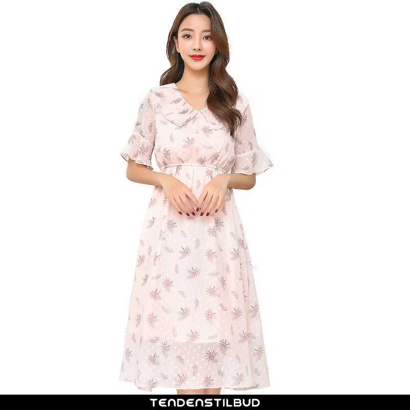 Kjoler dame : kjole kortærmet skinny trend lang sommer 2020 plisseret stramme lyserød revers ny special midten, farve : beige, lyserød.